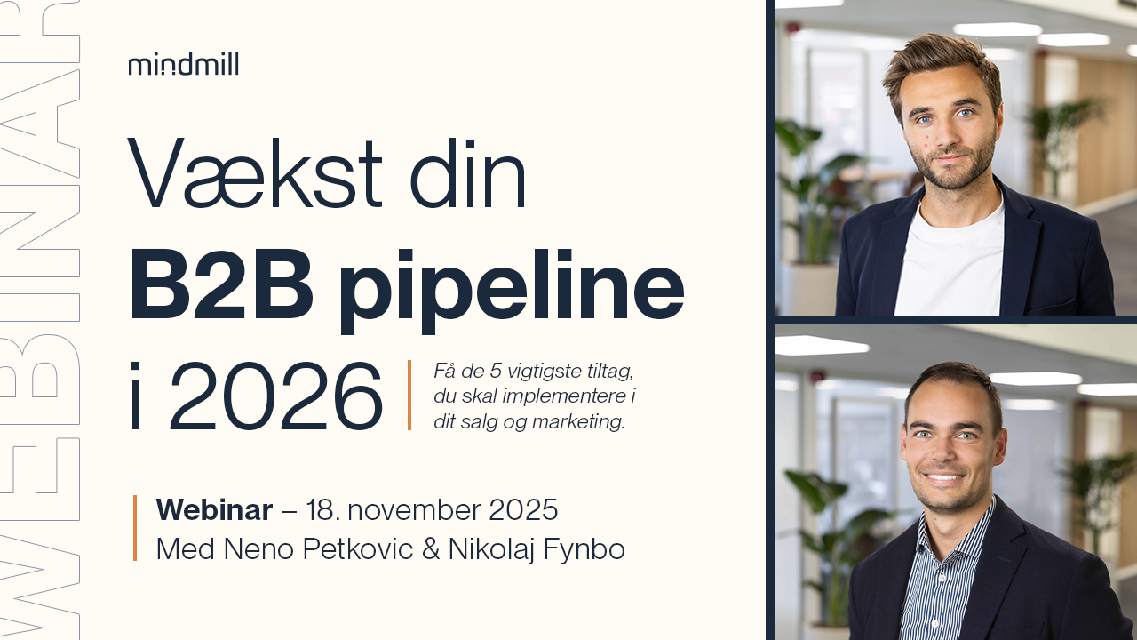 Vi deler løbende erfaringer og perspektiver fra arbejdet med mere end 400 B2B virksomheder. Se vores nyeste artikler og webinarer: